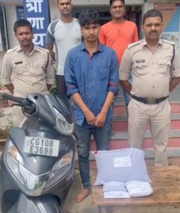 बेलगहना पुलिस चौकी के अंतर्गत आने वाले ग्राम भेलवाटिकरी के पास अवैध रूप से दो किलो मादक पदार्थ गांजा एक एक्टिवा बाइक सहित आरोपी प्रदीप गंधर्व पिता धनीराम गंधर्व उम्र 25 वर्ष पाठक किराना गली बिनोबा नगर बिलासपुर निवासी को पुलिस ने किया गिरफ्तार वाहन होण्डा एक्टिवा क्रं. सीजी 10 बी. ई 3698 मे मादक पदार्थ गांजा का परिवहन कर रहे थे जिसे की मुखबिर की सूचना पर तत्काल पुलिस टीम के द्वारा आरोपी प्रदीप गंधर्व पिता धनीराम गंधर्व पकड़कर गिरफ्तार कर लिया गया आरोपी के खिलाफ एनडीपीसी एक्ट के तहत कार्यवाही किया गया कुल कीमती 76000 हजार रूपए जप्त की गई उक्त कार्यवाही मे