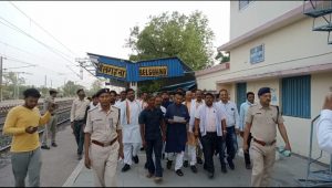 बेलगहना रेलवे स्टेशन में बन्द ट्रेनों को पुनः चालू करने के लिए स्टेशन मास्टर को डीआरएम के नाम सौंपा ज्ञापन
