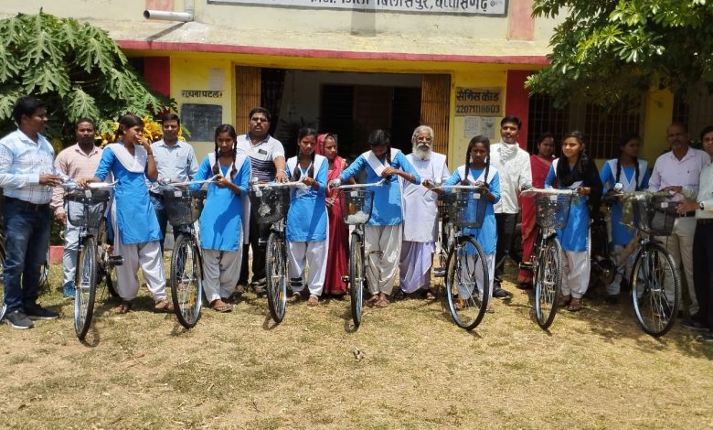 शासकीय उच्चतर माध्यमिक विद्यालय बानाबेल में सरस्वती साइकिल योजना के तहत छात्राओं को साइकिल वितरित किया गया