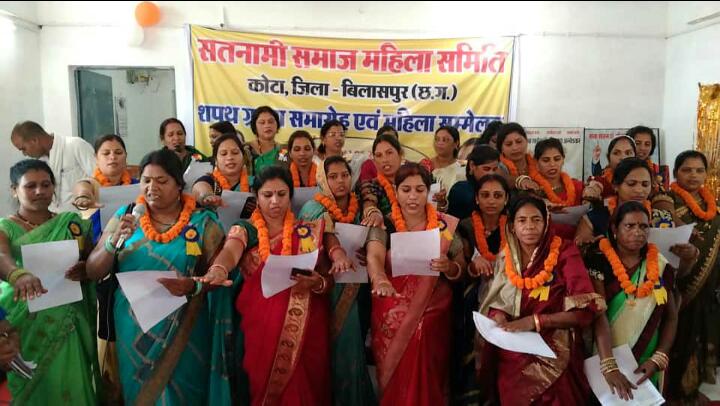 कोटा ब्लाक के अंतर्गत आने वाले समस्त सतनामी समाज महिला समिति के नवनियुक्त महिला पदाधिकारियों का शपथ ग्रहण एवं महिला सम्मेलन का आयोजन कोटा में स्थित भीमराव अंबेडकर सामुदायिक भवन में हुआ संपन्न इस दौरान सतनामी समाज के महिलाओं ने शपथ ग्रहण समारोह के दौरान शपथ ली है कि अपने कर्तव्य का इमानदारी पूर्वक निर्वाह करेंगे मुख्य अतिथि श्रीमती सुशीला जोशी प्रदेश अध्यक्ष महिला सतनामी समाज, श्रीमती चांदनी भारद्वाज प्रदेश सचिव महिला सतनामी समाज, श्रीमती सीमा धृतेश जिलाध्यक्ष महिला ग्रामीण, डॉक्टर हीरा अमित मिरी जिला अध्यक्ष, श्रीमती जमुनावती बंजारे जिला अध्यक्ष महिला सतनामी समाज बिलासपुर, कार्यक्रम की अध्यक्षता, श्रीमती चंद्रिका बंजारे संरक्षक महिला सतनामी समाज कोटा की उपस्थिति में सतनामी समाज कोटा ब्लॉक के महिला पदाधिकारियों का शपथ ग्रहण समारोह कार्यक्रम हुआ संपन्न ।