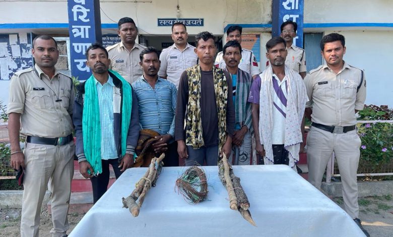 विवरण :- मामले का संक्षिप्त विवरण इस प्रकार से है कि दिनांक 12.10.2022 को बिलासपुर से सर्वे टीम आवधिक श्रमबल सर्वेक्षण हेतु ग्राम परसापानी चौकी बेलगहना आयी हुई थी, जो सर्वे के दौरान घने पहाड़ी क्षेत्रों के बहरीझिरिया में सर्वे कार्य में मदद हेतु ग्राम सरपंच द्वारा ग्रामीण गुलाब राम कोरवा पिता आत्माराम कोरवा उम्र 28 साल निवासी परसपानी को रास्ता दिखाने हेतु भेजा गया था। जो सर्वे के दौरान रात हो जाने एवं रास्ता भटक जाने पर परसापानी लौटते वक्त ढेलवापानी में अज्ञात शिकारियों द्वारा जंगली जानवरों के शिकार हेतु लकड़ी के खुटे एवं जी.आई. तार के माध्यम से 11 केवी विद्युत लाइन से करेन्ट लेकर लगाये गये जाल की चपेट में आने से गुलाब राम की मृत्यु हो गयी थी। उक्त मामले में थाना कोटा मर्ग पंचनामा कार्यवाही उपरान्त चौकी बेलगहना में अज्ञात आरोपियों के विरुद्ध गैर इरातन हत्या की धारा 304 (2) भादवि का अपराध पंजीबद्ध कर विवेचना में ली गई। प्रकरण में श्रीमान उमनि एवं वरिष्ठ पुलिस अधीक्षक महोदया द्वारा अज्ञात आरोपियों की पतासाजी कर तत्काल कार्यवाही करने के निर्देश पर श्रीमान अतिरिक्त पुलिस अधीक्षक ग्रामीण एवं श्रीमान अनुविभागीय पुलिस अधिकारी कोटा के मार्गदर्शन में बेलगहना पुलिस द्वारा अपराध पंजीबद्ध करने के तत्काल बाद त्वरित कार्यवाही करते हुये मुखबिर की सूचना पर आरोपी 1-दिलेश्वर खाखा पिता स्व. जगदेव 32 वर्ष ग्राम ढेलवापानी परसपानी चौकी बेलगहना जिला बिलासपुर छ.ग. 2- महावीर तिर्की पिता धुन्ने तिर्की उम्र 37 वर्ष ग्राम ढेलवापानी परसपानी चौकी बेलगहना जिला बिलासपुर छ.ग. 3-नन्दे कुजुर पिता बुधसाय कुजुर उम्र 36 वर्ष ग्राम ढेलवापानी परसपानी चौकी बेलगहना जिला बिलासपुर छ.ग 4- शिवरतन कुजुर पिता छोटेएतोबा उम्र 45 वर्ष ग्राम ढेलवापानी परसपानी चौकी बेलगहना जिला बिलासपुर छ.ग. 5-सलीम कुजुर पिता छोटेलाल साथ उम्र 38 वर्ष ग्राम ढेलवापानी परसपानी चौकी बेलगहना जिला बिलासपुर छ.ग. से पूछताछ पर आरोपियों द्वारा 11 के वी बिजली तार से कनेक्शन लेकर जंगली सुअर एवं अन्य जानवरों के शिकार हेतु करेन्ट युक्त तार लगाना तथा तार की चपेट में आकर गुलाब राम की मृत्यु हो जाना बतलाये। आरोपियों से अपराध में प्रयुक्त जी.आई. तार एवं लकड़ी का खूटा जप्त कर आरोपियों दिनांक 19.10.2022 को गिरप्तार किया है। गिरप्तार आरोपियों को न्यायिक अभिरक्षा में भेजा गया है।अन्य आरोपियों की पतासजी की जा रही है।