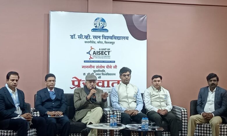नई शिक्षा नीति के कियान्नवयन में सीवीआयू अग्रणी विज्ञान, कला एवं टेक्नालॉजी के नवाचारों ने सीवीआरयू को बनाया सर्वोतम- संतोष चौबे कुलाधिपति,पत्रकारों से की प्रेसवार्ता