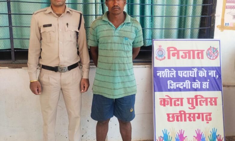 कोटा थाना क्षेत्र के अंतर्गत आने वाले ग्राम लालपुर के सावरा पारा मोहल्ला मेंं आरोपी जगन सिंह संवरा पिता आत्माराम सवरा उम्र 40 वर्ष ग्राम लालपुर सावरा पारा निवासी के द्वारा हाथ भट्टी से बना हुआ अवैध कच्ची महुआ शराब 10 लीटर को जप्त कर आरोपी के खिलाफ आबकारी अधिनियम की धारा 34(2) के तहत कार्यवाही किया गया है।
