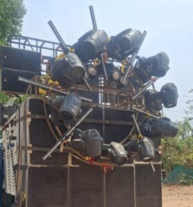 जब्त सामान में स्पीकर, एम्पलीफायर, जनरेटर, सर्च लाइट, पार लाइट, स्विच बोर्ड, तार और मोबाइल शामिल थे। पुलिस ने कोलाहल अधिनियम 1985 की धाराओं के तहत मामला दर्ज कर न्यायालय में पेश किया।